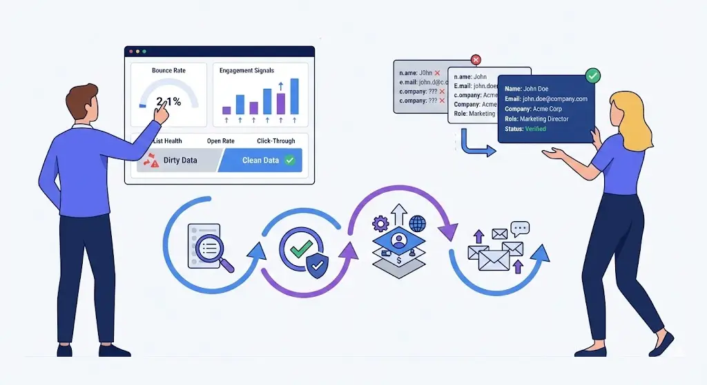 This guide is for senior B2B marketers who already run email at scale and need a repeatable way to refresh an aging list without turning it into a once-a-year scramble. It focuses on the operational sequence: inventory, consolidation, hygiene, validation, ICP rematching, enrichment, re-permissioning, and re-engagement. You can run it end to end as a quarterly or annual reset, or use individual sections as lightweight monthly maintenance.