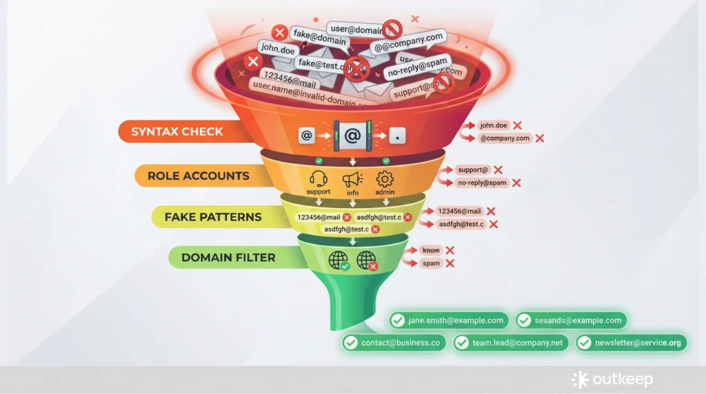 Paid verification catches invalid and risky addresses after low-cost filters are complete, and surfaces catch-all behavior that requires deliberate handling.